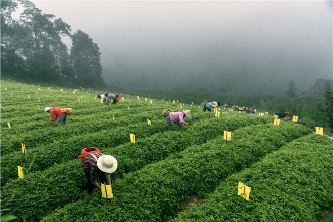 青翠的茶园,在山峦间铺展,既是茶区也是景区。山雾萦绕,茶香弥漫,正在采摘夏茶的村民与慕名而来的游客交相辉映、相得益彰,共同书写了一幅“人不负青山,青山定不负人”的现实画卷。